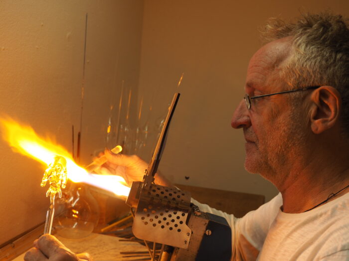 Glas fließt unter den Händen des Glasbläsers alois Hechl. In der Flamme wird es heiß und beginnt zu fließen wie Honig und es beginnt der Kampf gegen die Schwerkraft. In nur einem Bruchteil einer Sekunde ist die Form in der Symmetrie. Und etwas später ist schon die Kugel, das Glas, der Stiel, die Figur aus der Form geraten. Die Genialität des Handwerks besteht darin so nah wie möglich an die Perfektion zu gelangen und doch nicht perfekt zu sein. So bekommt jedes einzelne Glas seine Individualität und wird zum Einzelstück.